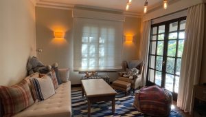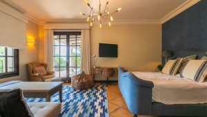 Above all, the main floor of this luxury villas in Marbella comprises 2 wings with an impressive entrance hall with an interior patio with skylight and a light and airy living room with a fireplace giving access to the garden and swimming pool.