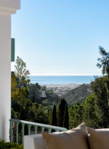 Situated in the gated residential urbanisation of El MadroƱal, a pine and cork forested area with stunning views over the Mediterranean coast and designed by renowned architect CƩsar Leyva, known for his elegant Andalusian cortijo like properties. El MadroƱal enjoys 24 hour security and access via 6 gates along the Ronda road, and is located at just a couple of minutes drive to shops and all types of services. Finished at the end of 2021, this brand new property sits beautifully on a landscaped plot of just over 3000m2 and enjoys stunning views over the mountains to the east and lovely views down the valley to the sea to the south. The property features B&O surround sound and Domotic as well as Geothermal heating and cooling system. The main living area spreads over one floor, with further guest and staff area on the lower ground floor. The entrance drive leads into a carport for two cars and the main entrance to the property on ground level as well as to the staff apartment on the lower ground level. There is project to enclose the carport with entrance directly into the property via a cloakroom, ideal for rainy days and additionally via the main door. Beautiful antique wooden doors open up to a spacious entrance hall with an imposing fireplace, cloakroom and guest w.c. To the right is the main bedroom suite with access to main terrace and to the back garden, ideal for enjoying the shade in the hotter months of the year. To the left of the entrance is a spacious guest bedrooms suite or second main bedroom with access to lovely small garden area, ideal for creating an outside breakfast/coffee area to sit and enjoy countryside views. The open plan living room features double height vaulted ceilings with wooden beams, a grand fireplace and dining area which overlooks the pool, garden and valley down to the sea through a beautiful bay window. The living leads out onto the main terrace with a lovely tailor made seating area from which to enjoy the peace and quiet of El MadroƱal, as well as views of the green areas and the sea in the distance. There is pre-installation for an exterior fireplace which would provide a great additional feature to enjoy the colder months outside. Off the living room is an open plan kitchen of Swedish design, with a large sliding door which allow you to separate both rooms if needed. The kitchen has access to a lovely covered terrace with a fountain with drinking water, from which to enjoy the stunning countryside views. Adjacent to the kitchen is a spacious pantry, laundry room with double barn doors leading out and a glass bodega which is beautifully lit up at night. The wide staircase leads down to the guest and staff area at garden level. The self contained staff apartment has its own independent access, and two additional guest bedroom suites enjoy direct access onto the pool area. A treatment/massage room and gymnasium with coffee/tea area and pre installation for a sauna with direct access to the 15mts long salt water jet pool make this a home to enjoy and relax. Additional features include tailor made cushions and fabrics and hand made exterior light fittings.